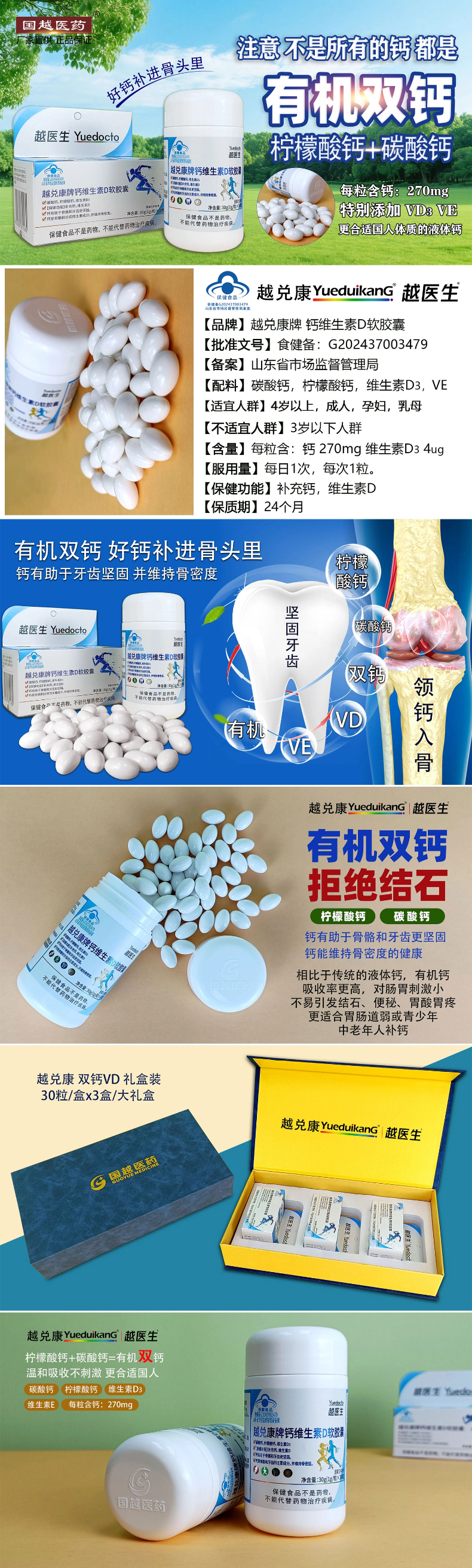 国越医药越兑康钙维生素D软胶囊大礼盒装5盒