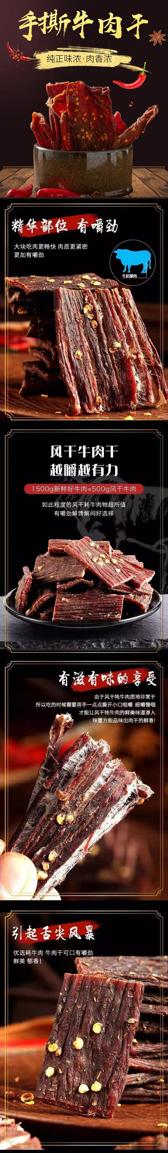 新疆手撕牦牛肉干五香味香辣味各1袋[250g/袋*2]
